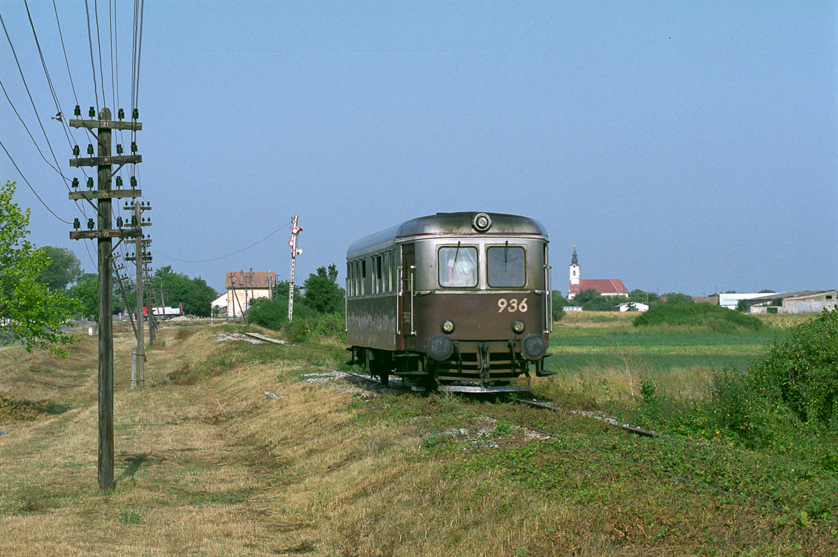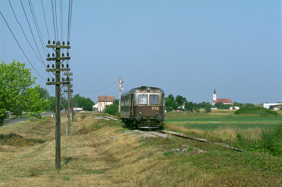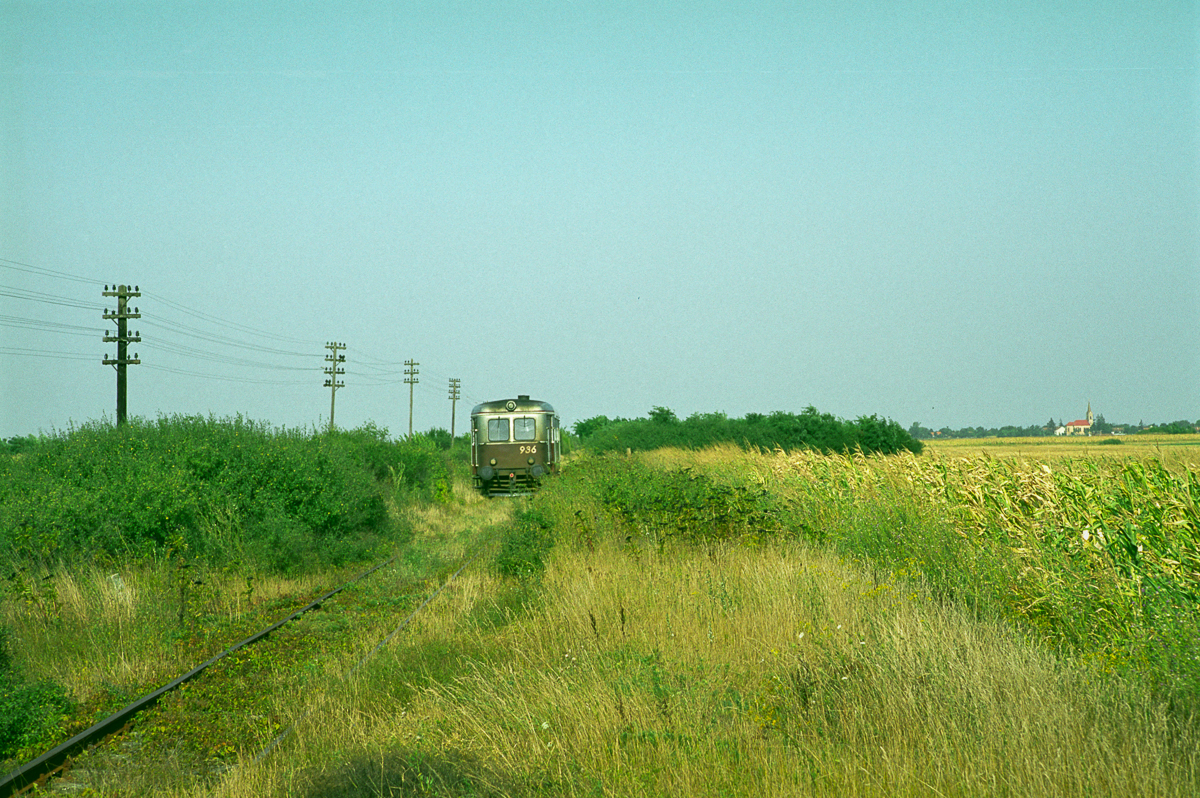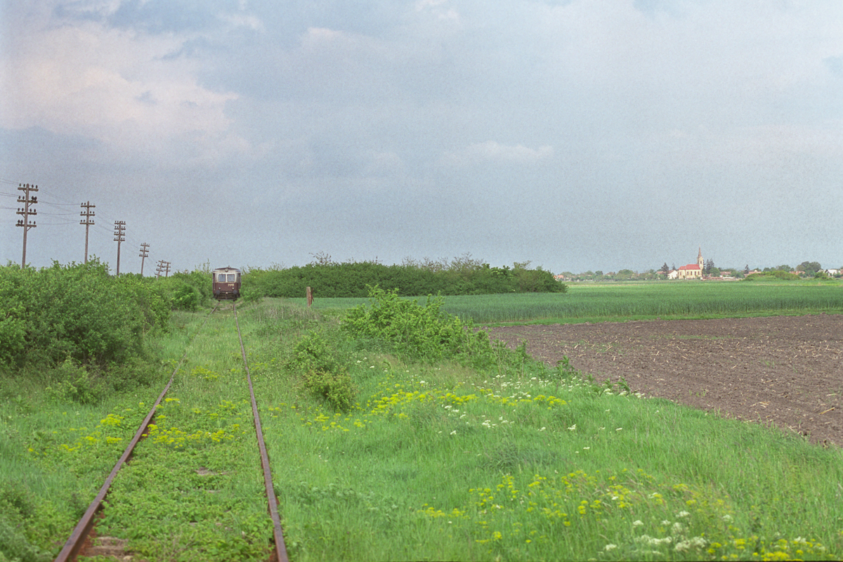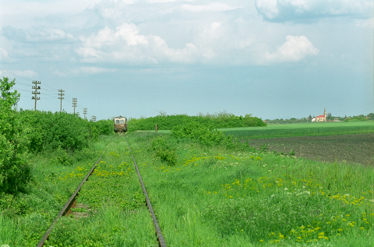 Am 15.08.2008 hatte der 77 0936 Dienst am Abendzugpaar Jebel - Liebling und zurück P9789/P9790. Hier sehen wir die Fahrt nach Liebling als Nachschuss mit der Kirche von Iosif.