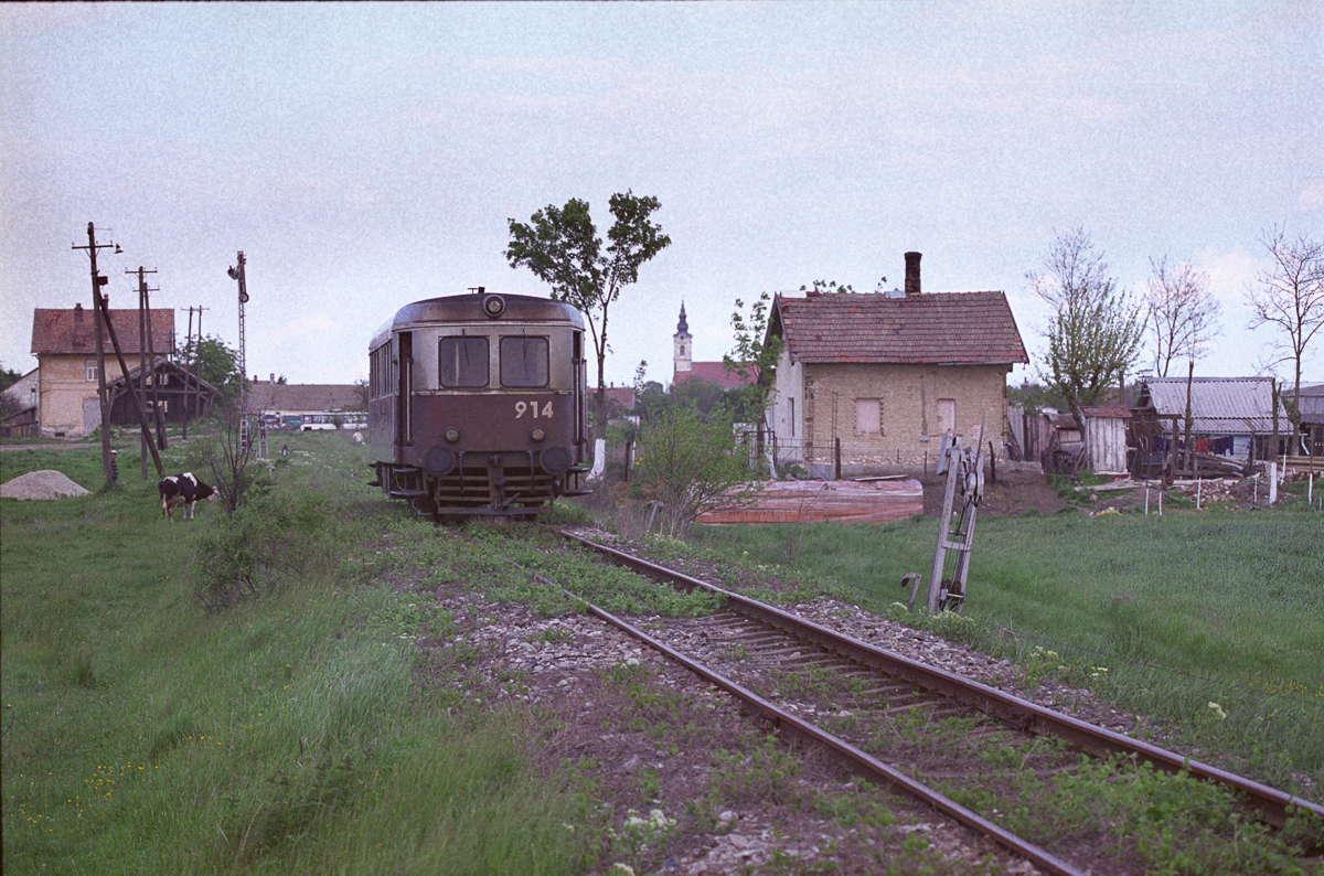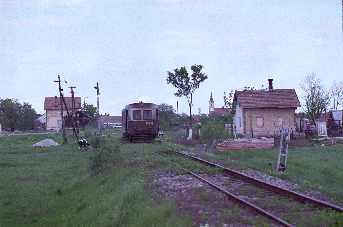 77 0914 im Bahnhof Jebel (02.05.2008). Rechts steht der P 9729 nach Giera (KBS 922) bereit.