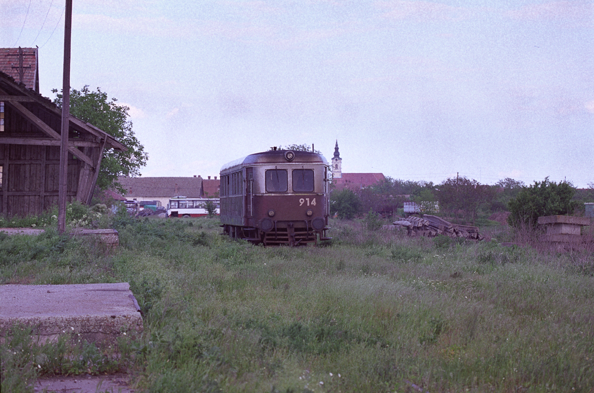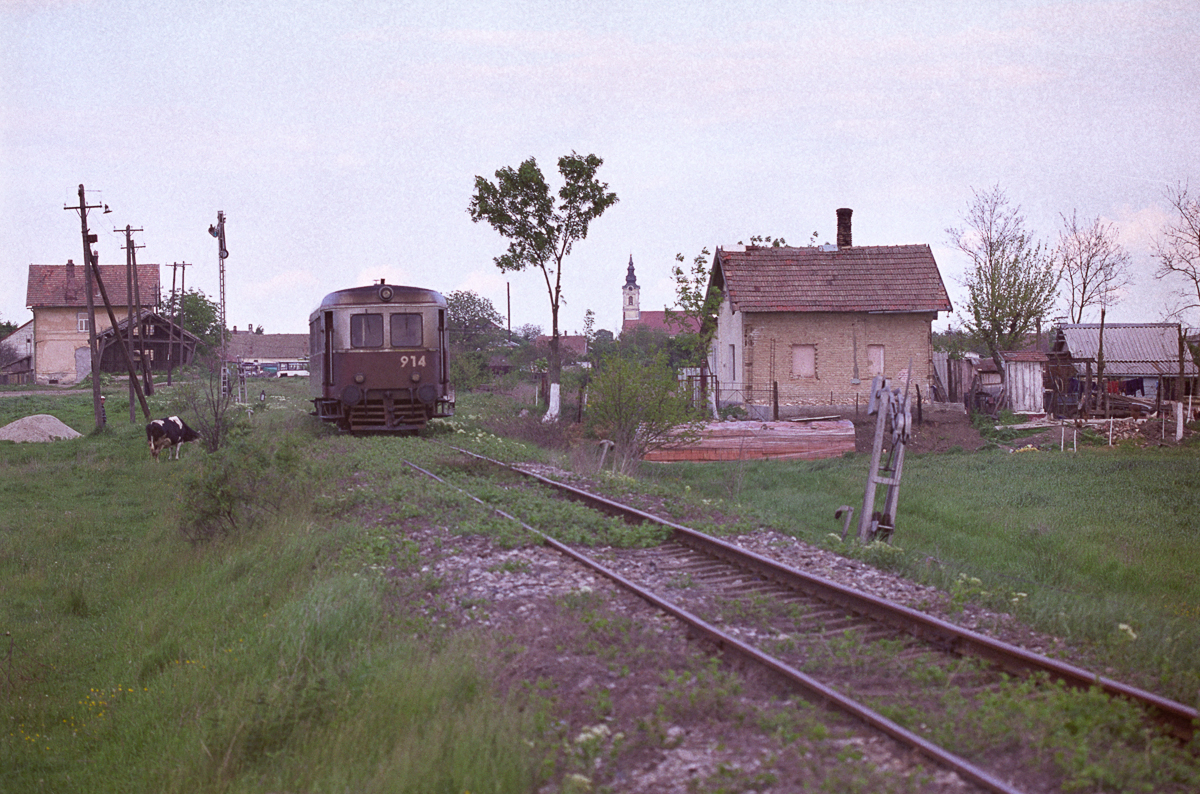 77 0914 im Bahnhof Jebel (02.05.2008). Rechts steht der P 9729 nach Giera (KBS 922) bereit.
